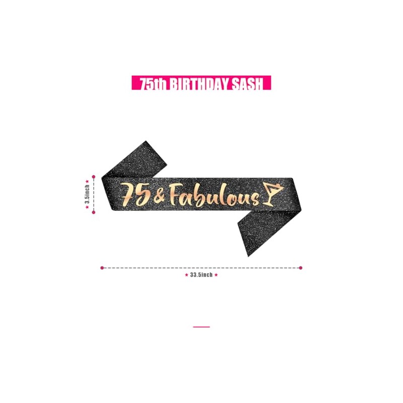 - PartyForever 75th Birthday Sash 75 and Fabulous Decorations for Her Made of Rose Gold Glitter Fabric with Black Letters for Women