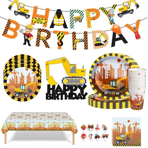 - Safe and stylish: made of 100% paper, non-toxic, compostable and biodegradable. Thanks to the construction site design, this construction site party set can add more colour, fun, cuteness and style to your celebration. It is the perfect table decoration for birthday parties or other festive occasions.