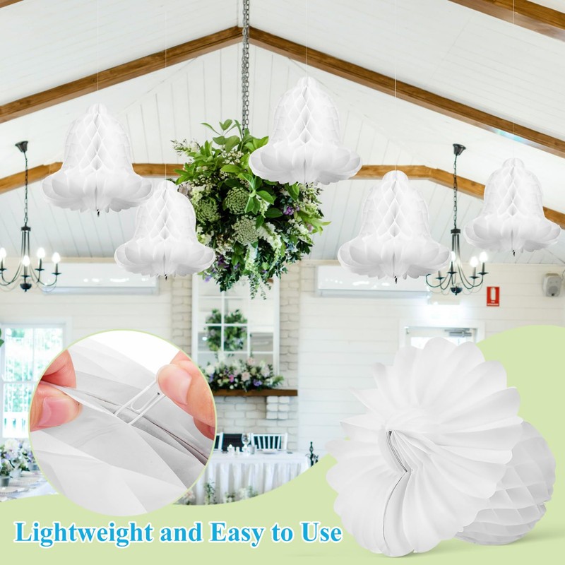 - 【Package List】You will receive 5 pieces of honeycomb bells in white color, adding a pure and concise style to the wedding banquet, and the quantity is sufficient to meet your decoration needs.