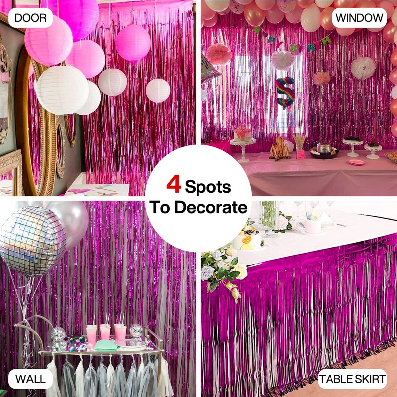 - Including: 3 pcs hot pink foil fringe curtains, 2m length x 1m width