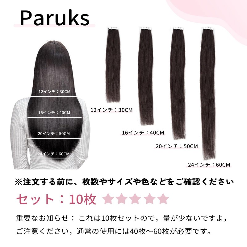 Paruks Human Hair Tape-in Extensions, Wig, Black, Long, Straight Hair, Soft, Natural, Heat Resistant, Set of 10, 1B#, 11.8 in (30 cm)