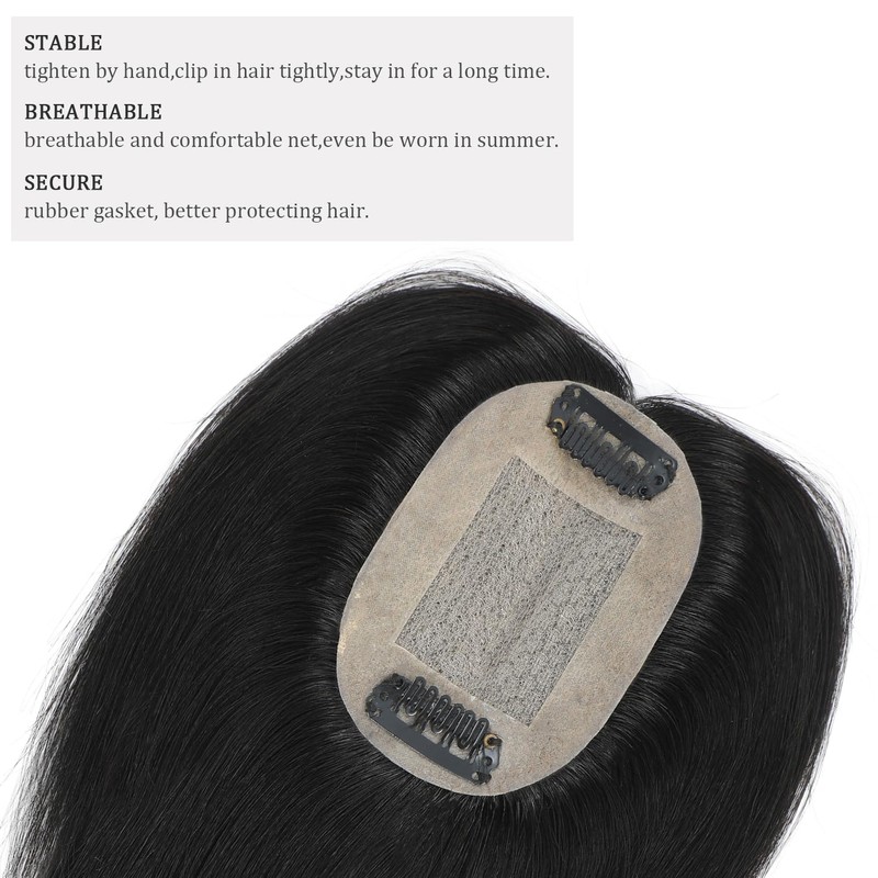 PARXITN Clip-In Human Hair Toppers, Seamless Hairpiece, Toupee for Women, Lace Base Topper for Thickening Hair, 35 cm, Natural Black