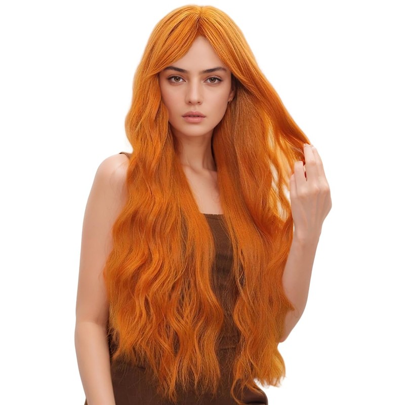 PARXITN Hair Wigs for Women 100 cm Long Curly Pumpkin Synthetic Wig Adjustable Middle Part Anime Wigs for Cosplay Party Daily Use