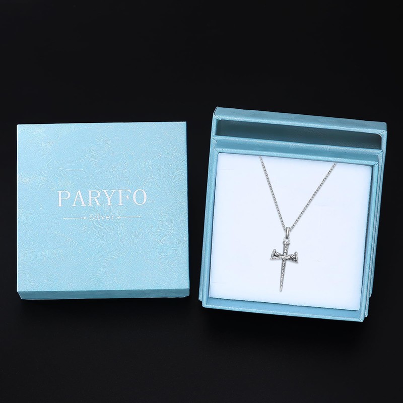 PARYFO Nail Cross Necklace 925 Sterling Silver Religious Nail Cross Pendant Christian Bible Verse Jewelry Gift for Men Women (01-Vine Nail Cross 01- Silver)