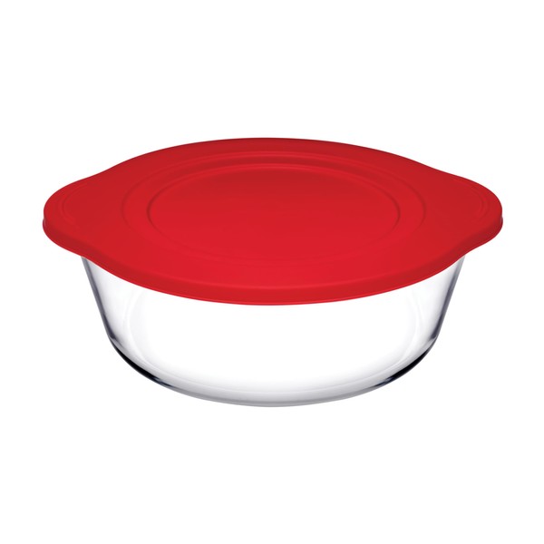 Pasabahce Borcam Plastic Red Lid Round Transparent Casserole Dish 1.45 Litres