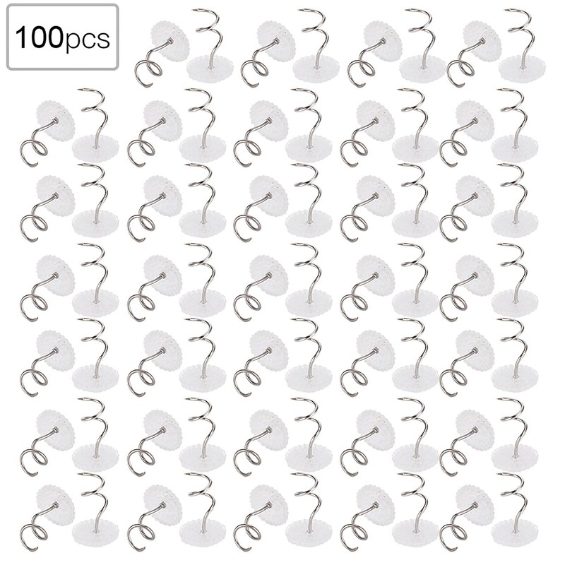 Pasadores de Tachuela para Falda de Sofá Cama, 100 Piezas de Acero Inoxidable ABS Cabezas Transparentes Falda de Cama Pasadores Giratorios Sofá Antideslizante Clavo en(100/caja de Clavos en Espiral)