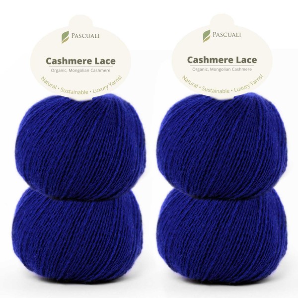 PASCUALI Organic Cashmere Lace Knitting Wool 100% Cashmere Wool for Knitting and Crocheting, Set: 4 Balls - 100 g - Colour: Indigo 34