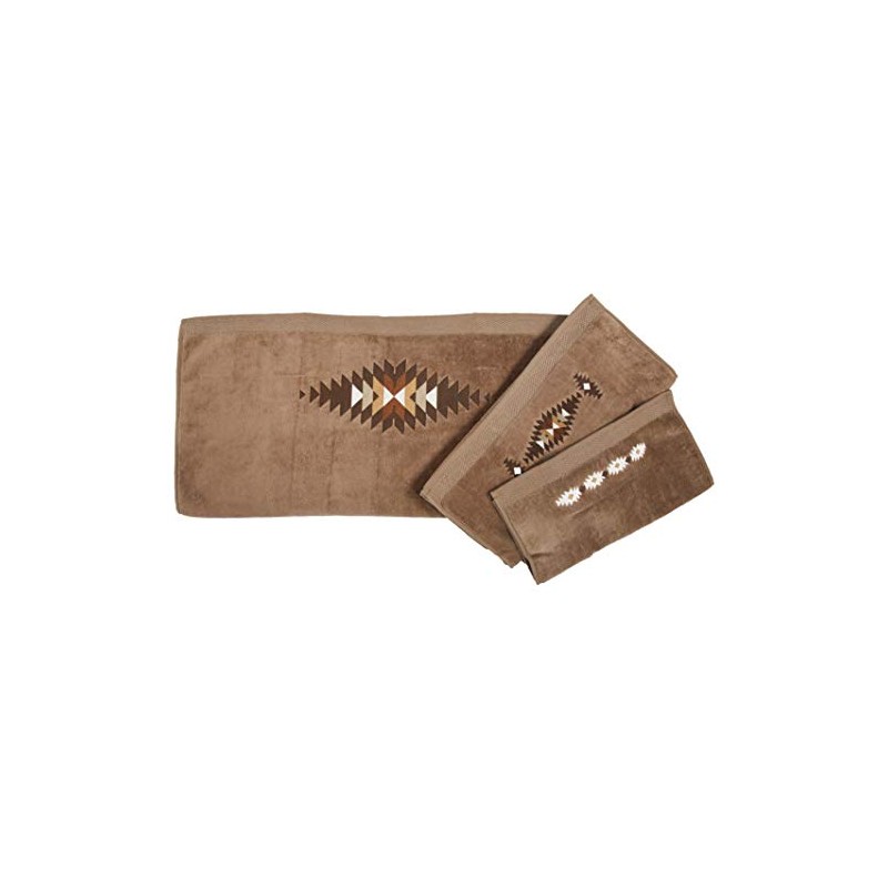 Paseo Road Yosemite Aztec 3 Piece Cotton Embroidered Bath Towel Set, Mocha, Rustic Southwestern Cabin Lodge Style