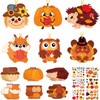 Pasimy 24 Sets Thanksgiving Crafts Kits DIY Fall Autumn Ornaments Turkey Scarecrow Pumpkin Owl Sticker Crafts Autumn Harvest Crafts Bulk Art Sets for Thanksgiving Party Favors Home Classroom