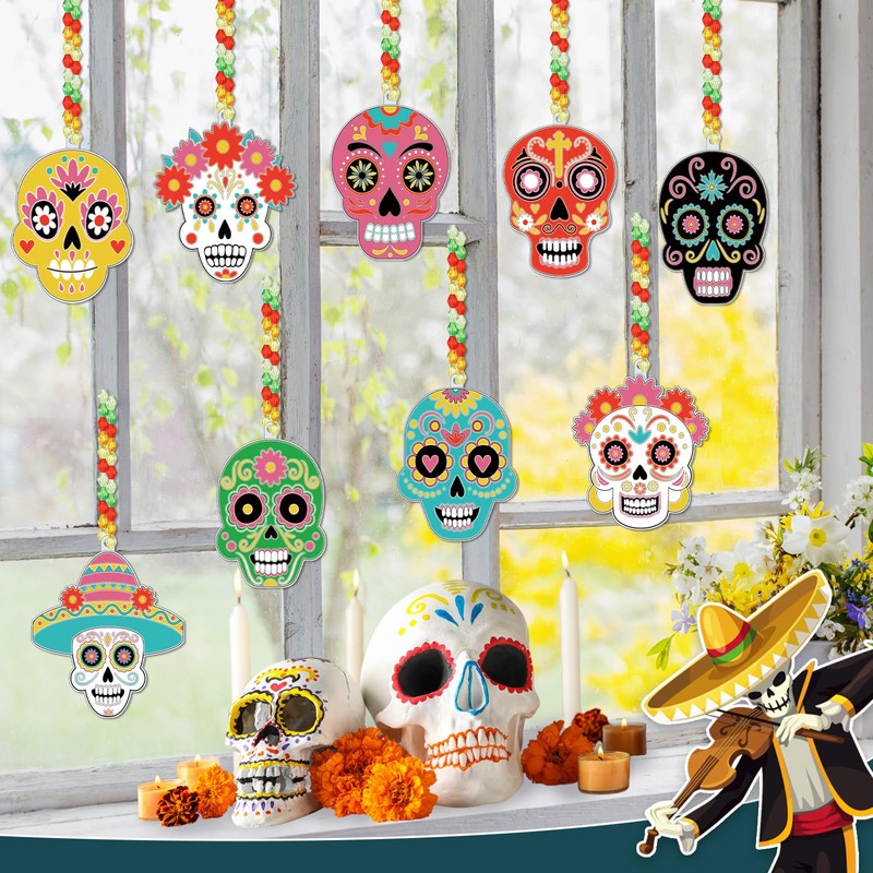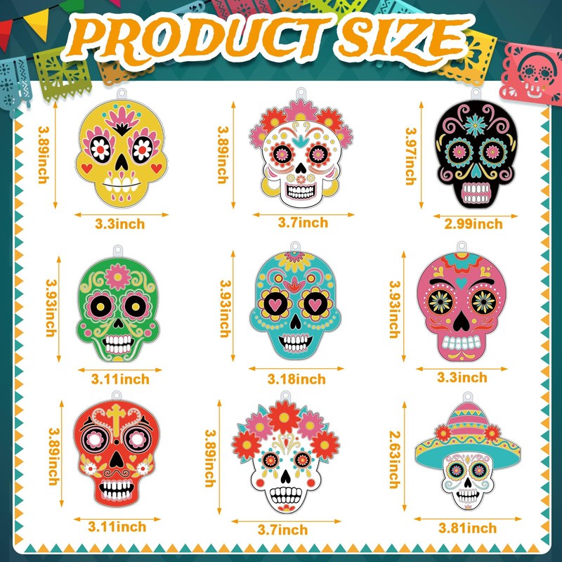 - Wide Applications: colorful Halloween skeleton head crafts are ideal to inspire creativity and imagination and are ideal for day of the dead skulls party decorations, Halloween party ornaments, Dia De Los Muertos decor, Halloween party decorations, devil parties, skeleton parties, and spooky parties; You can hang them on windows, walls, trees, and tables or as props for photo shoots