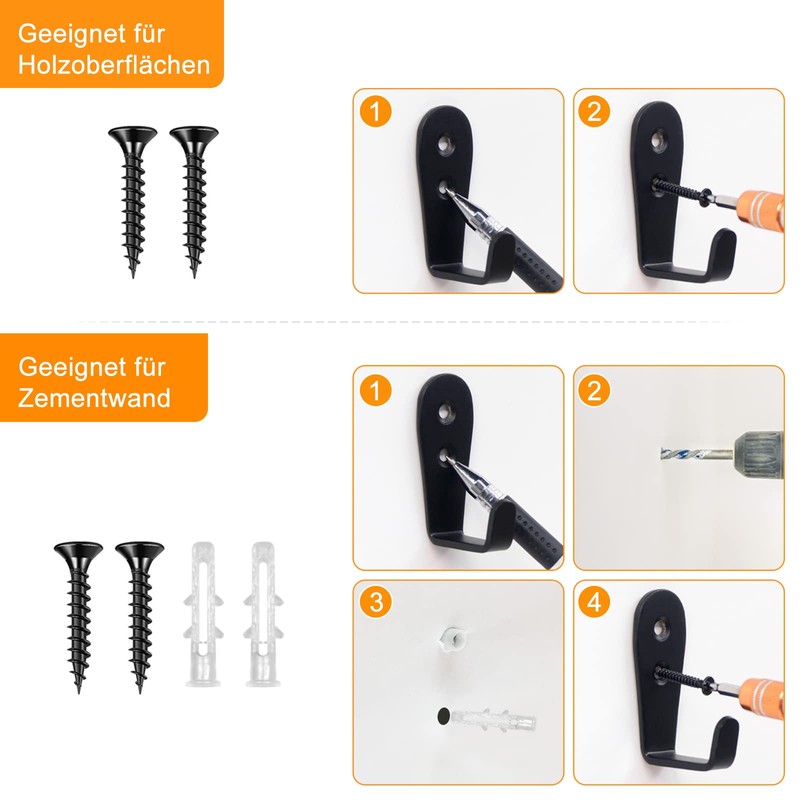 Wall and door hook – the coat hook equipped with plastic anchors can be firmly mounted on the wall. You can also directly attach them to doors, wooden boards and furniture with screws.