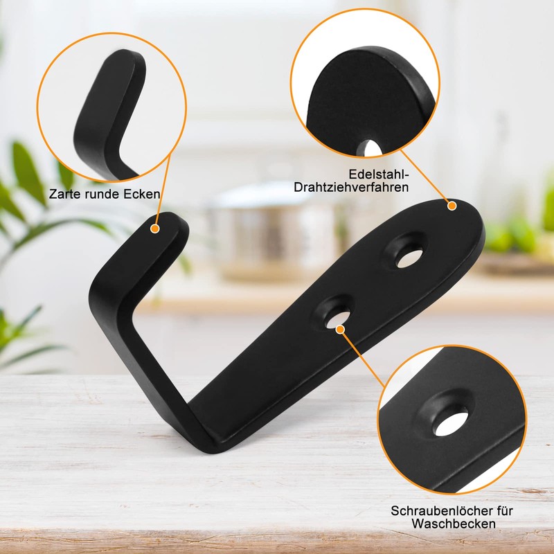 - Heavy duty coat hook: the coat hook stainless steel has a thickness of 3 mm, is extra strong and can carry heavy objects without breaking or deforming. It can hold a weight of up to 15 kg
