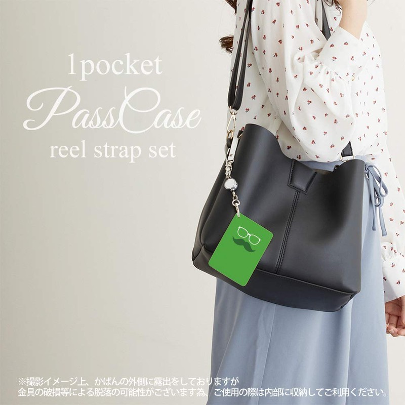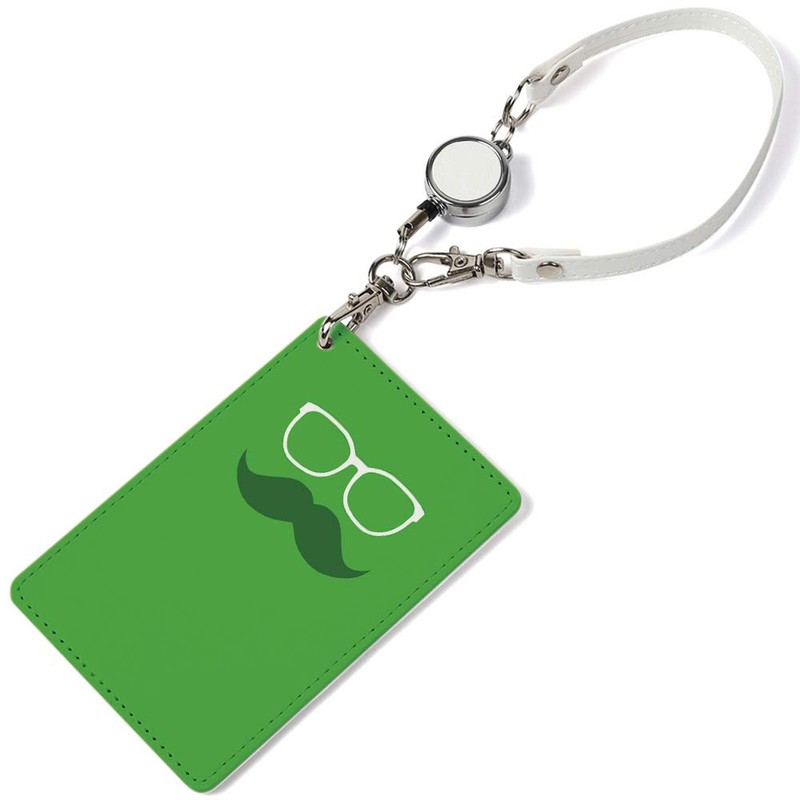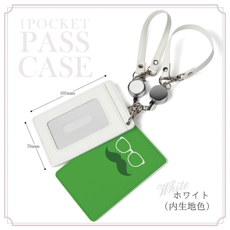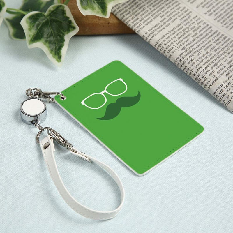 Pass Case, 1 Pocket, Reel Included, Beard Glasses, Stylish, Fashion, Clear Pocket, Card Case, Card Holder, Beard Pattern, Beard Glasses, Simple, green