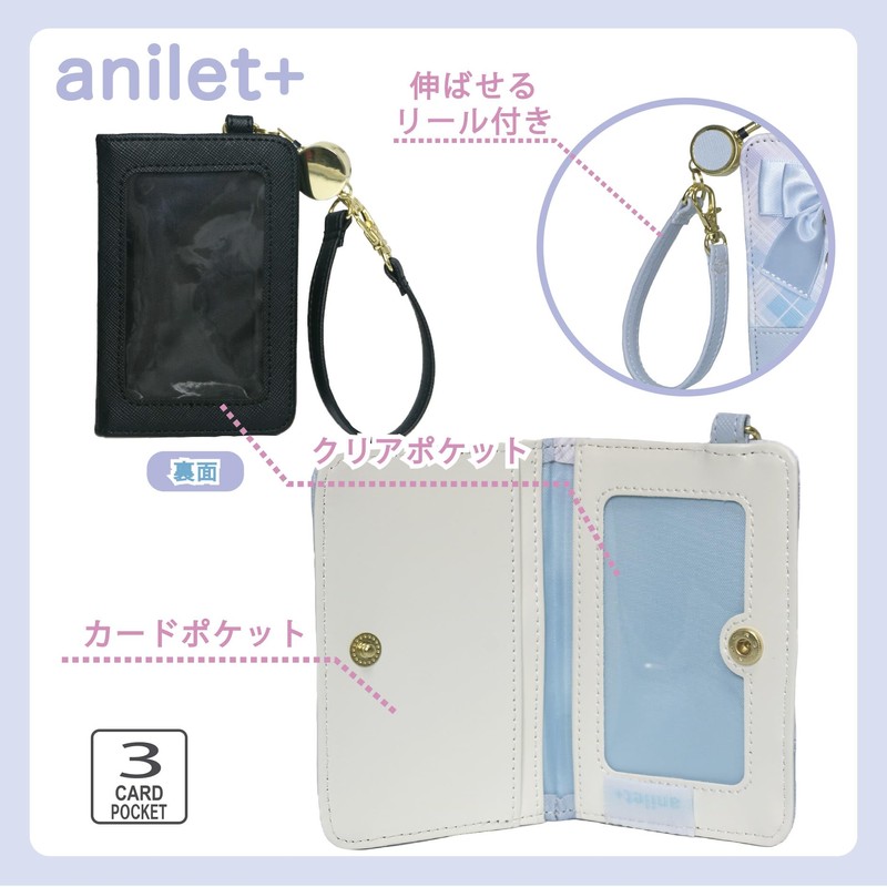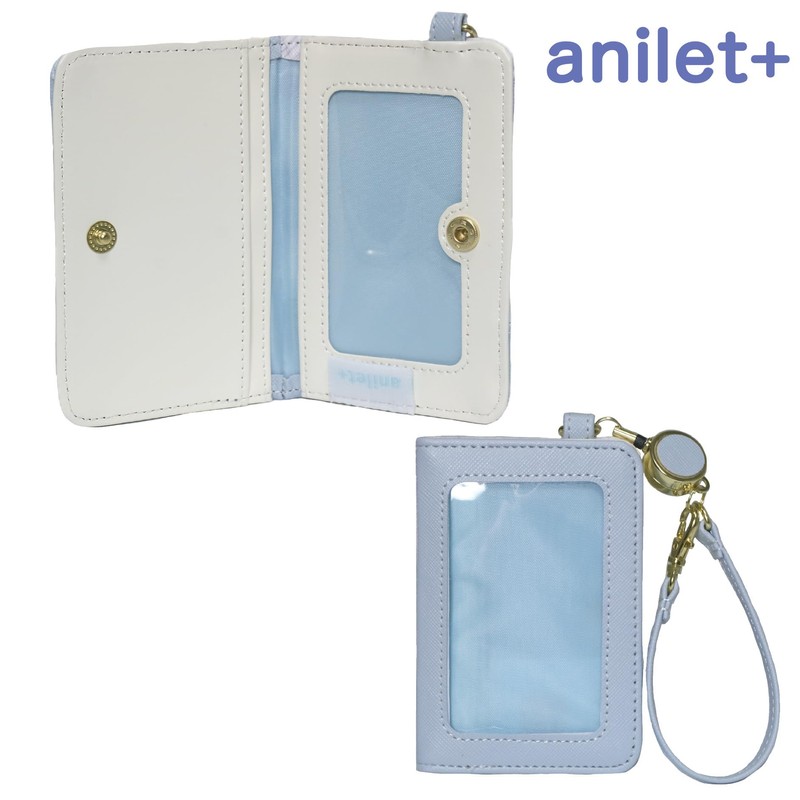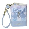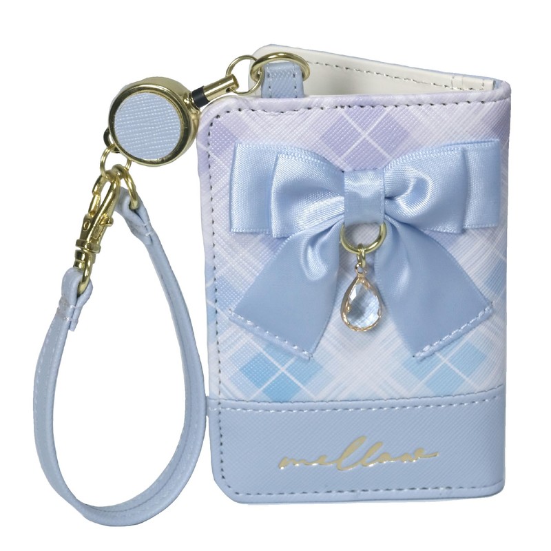 Pass Case with Reel for Girls Folding Ribbon Checkered School Commute to Work (Light Blue)
