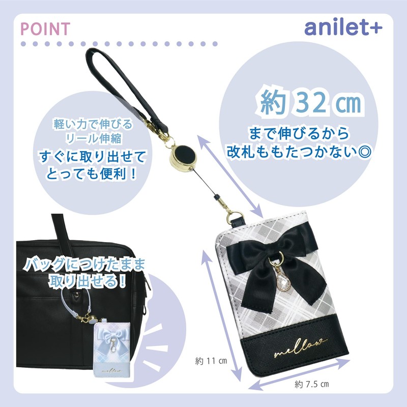 Pass Case with Reel for Girls Folding Ribbon Checkered School Commute to Work...