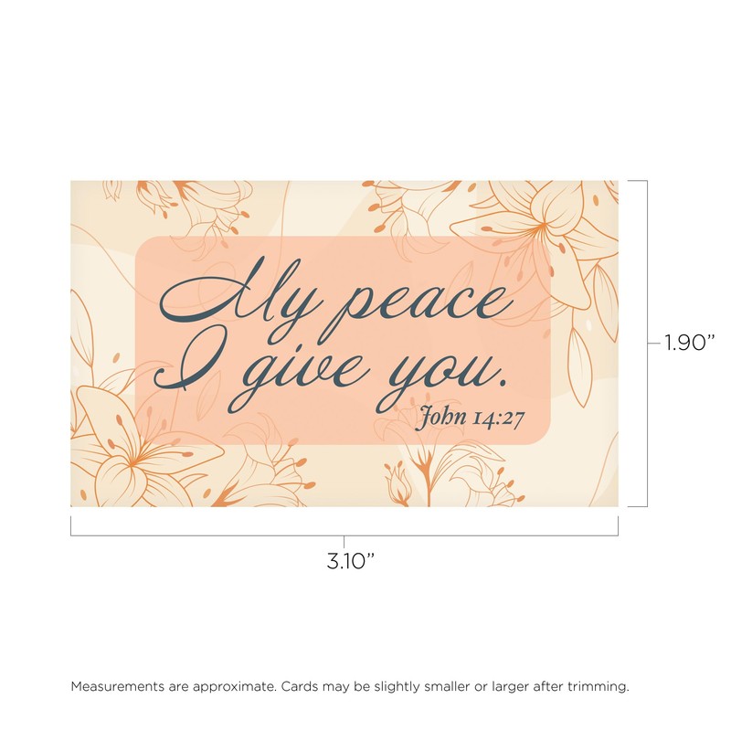 - Uplifting Bible Scripture Cards - These scripture cards with Bible verses feature the inspiring Scripture reference, John 14:27 and the words, "My Peace I give you" - perfect for enhancing your daily devotions and providing spiritual inspiration.