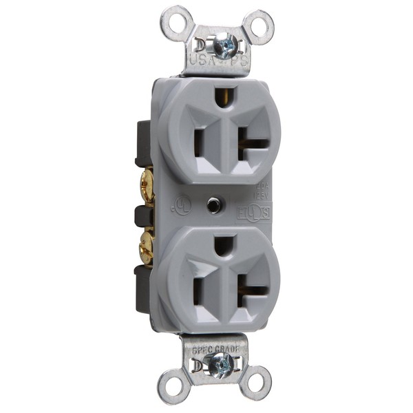 - Gray 20 AMP 125V Heavy Duty Outlet Construction Grade