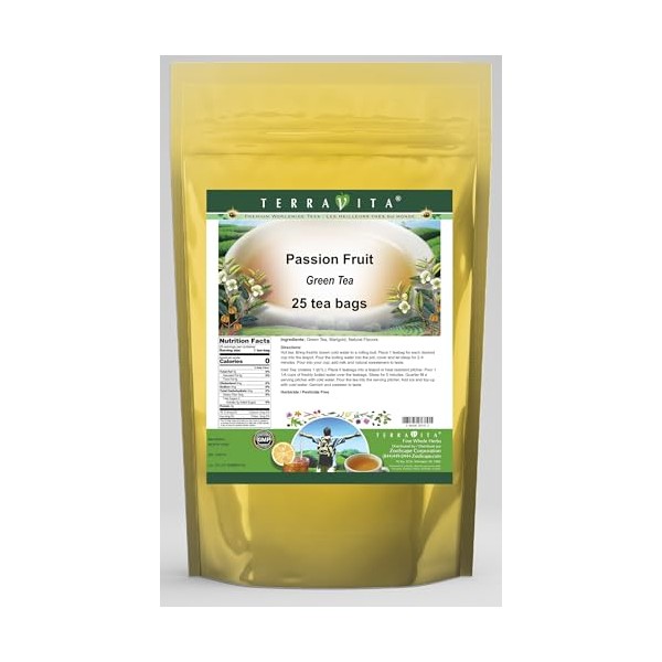 Our Passion Fruit Green Tea is a tasty flavored Green tea that will refresh you with its terrific taste! - Ingredients: Green tea, Marigold and natural passion fruit flavor. - Hot tea brewing method: Bring freshly drawn cold water to a rolling boil. Place 1 teabag for each desired cup into the teapot. Pour the boiling water into the pot, cover and let steep for 2-4 minutes. Pour into your cup; add milk and natural sweeteners to taste. - Iced tea brewing method: (to make 1 liter/quart): Place 5 teabags into a teapot or heat resistant pitcher. Pour 1 1/4 cups of freshly boiled water over the teabags. Steep for 5 minutes. Quarter fill a serving pitcher with cold water. Pour the tea into the serving pitcher. Add ice and top-up with cold water. Garnish and sweeten to taste. - TerraVita is an exclusive line of premium-quality, natural source products that use only the finest, purest and most potent ingredients found around the world. TerraVita is hallmarked by the highest possible standards of purity, potency, stability and freshness. All of our products are prepared with the highest elements of quality control, from raw materials through the entire manufacturing process, up to and including the moment that the bottles or bags are sealed for freshness and shipped out to you. Our highest possible standards are certified by independent laboratories and backed by our personal guarantee. - TerraVita exists to meet and ensure your family's health and wellness without the harmful effects of chemicals and health products. We strive to make all of our products affordable and reliable and are constantly searching the market to maintain our affordability and to look for new ways to serve you and the ones you love. TerraVita has become a trusted household name for many families and can