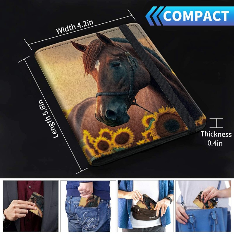 Passport and Vaccine Card Holder Combo, PU Leather RFID Blocking Passport Holder Cover Case for Women, Travel Passport Wallet Leather Case with Elastic Band, with Pen, Brown Horse