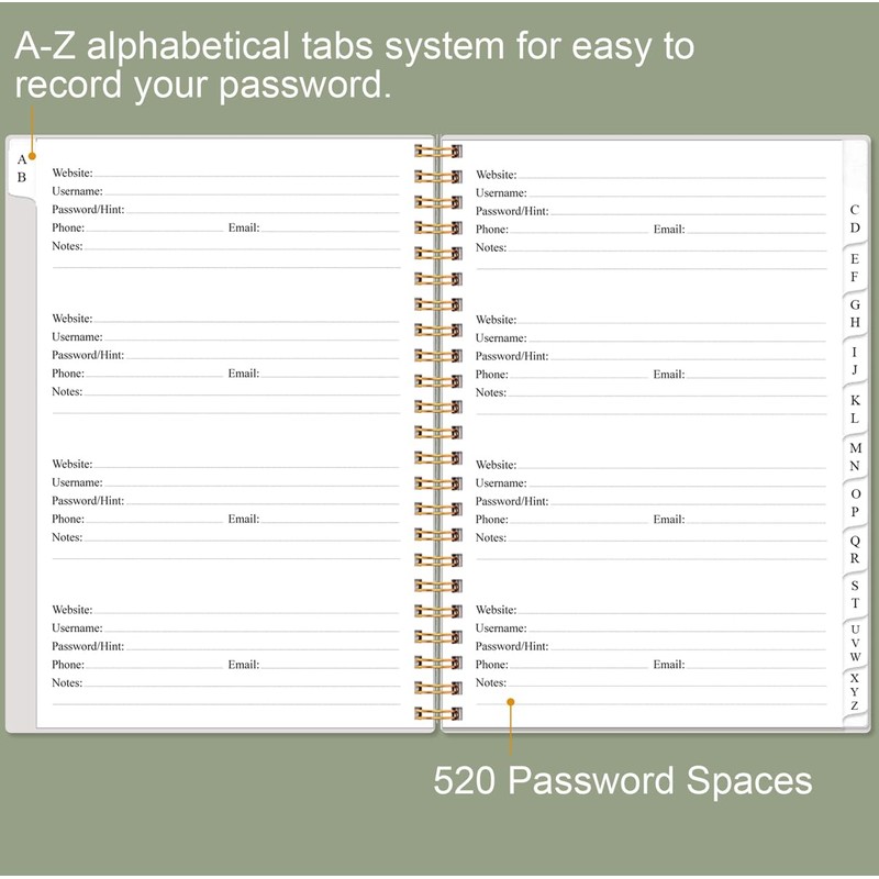 - ALPHABETICAL A-Z TABS - Password book with alphabetical tab system for easy to record the passwords you need