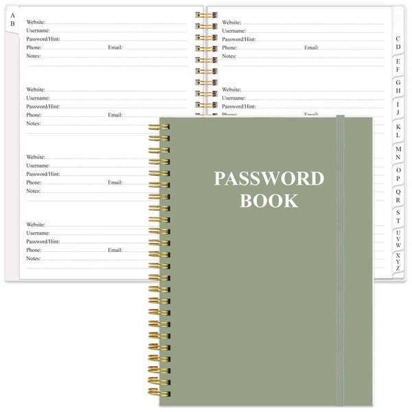 Password Book with Alphabetical Tabs - Large Size Password Keeper Journal Notebook for Computer & Website Logins, 5.8" x 8.5", Green