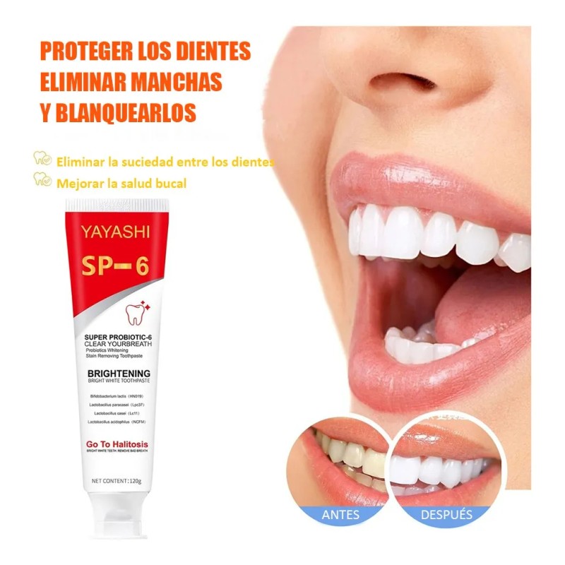 ¿Lista para unirte a la revolución de la sonrisa? 💫 La Pasta Blanqueadora Probiótica Yayashi SP-6, ahora en un conveniente paquete de 2 unidades, está causando furor en TikTok... ¡y con razón! Prepárate para experimentar una transformación radical en tu higiene bucal con esta fórmula innovadora que combina tecnología blanqueadora de vanguardia con el poder equilibrante de los probióticos. Imagina despertar cada mañana con una sonrisa más blanca, fresca y saludable... ¡es hora de hacerlo realidad! ✨