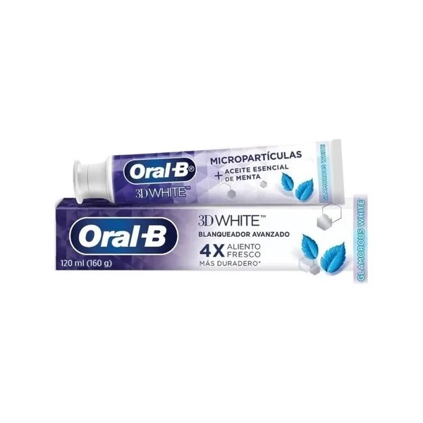 Descripción Limpia: Experimenta una sonrisa más brillante con la pasta de dientes Oral B 3D White Blanqueamiento Avanzado. Esta pasta de dientes remueve manchas superficiales y del café, té, vino y gaseosas. Aliento fresco 4 veces más duradero con aceites esenciales de menta. Además, la pasta de dientes incluye flúor para una protección completa. Combina el uso de la pasta de dientes 3D White con un cepillo de dientes eléctrico o manual de Oral B para conseguir una limpieza superior. Úsala 3 veces al día o después de cada comida para mantener una sonrisa saludable y radiante.