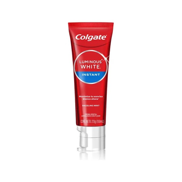 Descripción Limpia: Colgate Luminous White Instant es la pasta dental ideal para quienes buscan una sonrisa radiante en poco tiempo. Su fórmula avanzada está diseñada para eliminar manchas superficiales y blanquear dientes, proporcionando una limpieza efectiva que resalta la luminosidad de tu sonrisa. Con cada cepillado, sentirás cómo su textura cremosa se desliza suavemente, alcanzando áreas difíciles y brindando una frescura duradera.