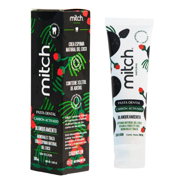 Pasta Dental Natural Mitch De Carbón Activado 100ml Blanqueamiento Sin Flúor