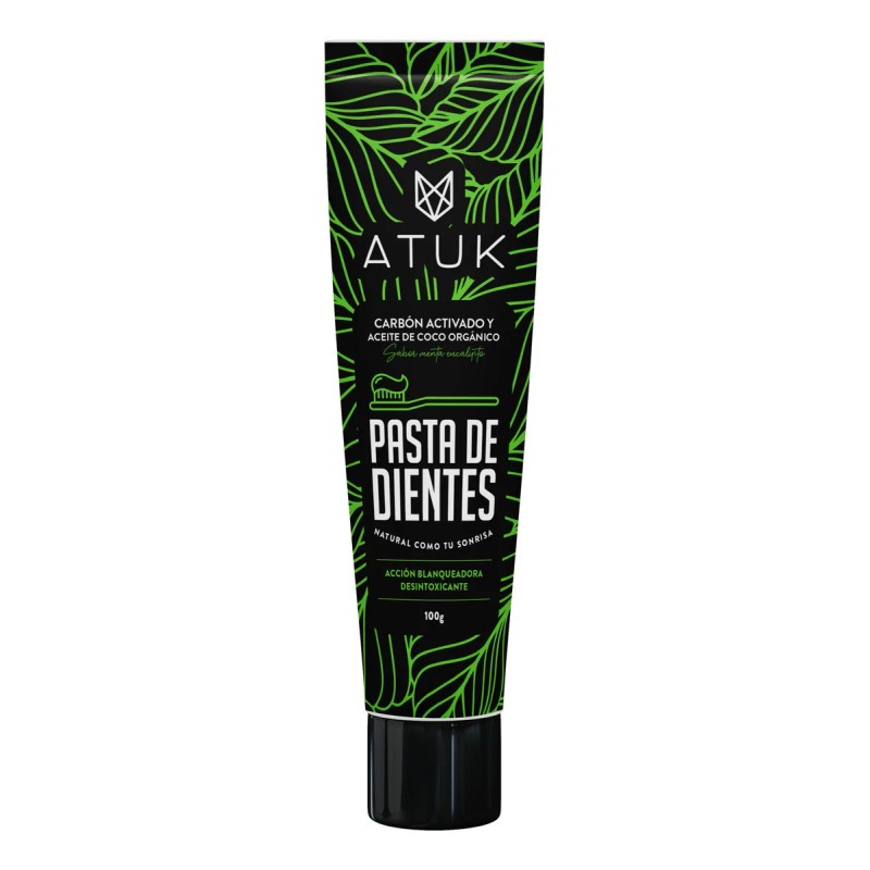 La pasta dental Atuk carbón activado es una pasta con acción blanqueadora con un sabor placentero y excelente sensación de limpieza y frescor en la boca tras su uso. Además, protege las encías, elimina las manchas del café, té, vino y tabaco de tus dientes a la vez que combate las bacterias que causan el mal aliento.