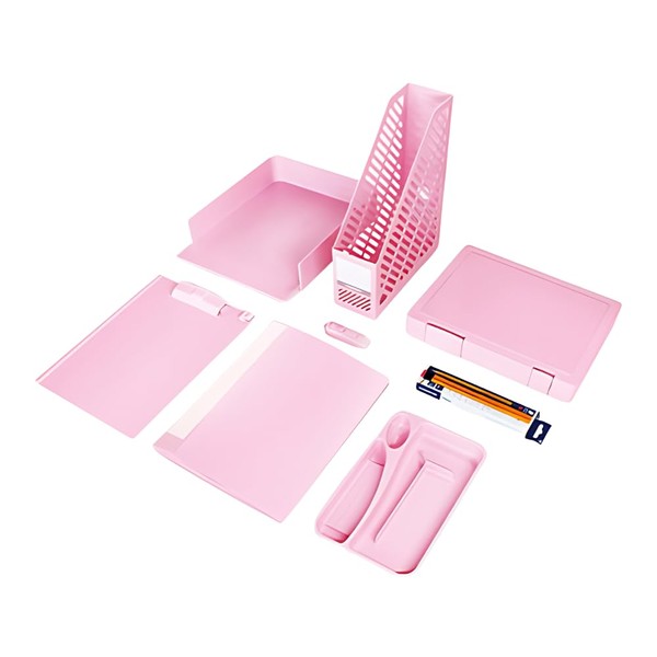 Pastel Desk Organizer Pink Set - 8-in-1 Multi-Functional Office Supply Organizer in 4 Colors | Includes File Holders, Trays, Pen Holders, and More