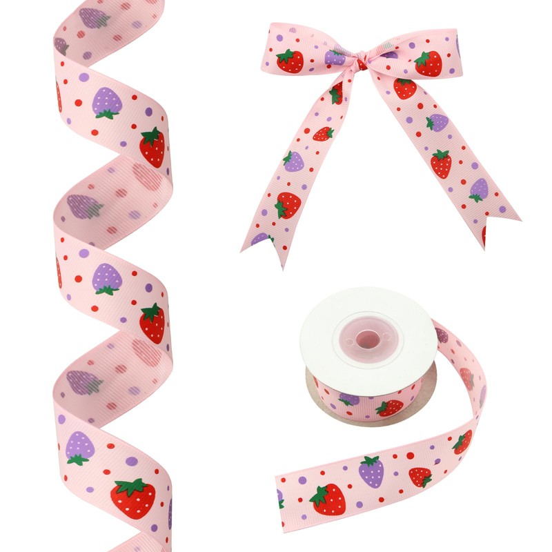 - 🍓【What You Get】Grosgrain/Satin Ribbon 1 roll in 10 yards (30 feet) in length and 2.5cm/1 inch in width. Pink and Red Strawberry With polka dots in various size on white Color makes your decor more eye-catching.