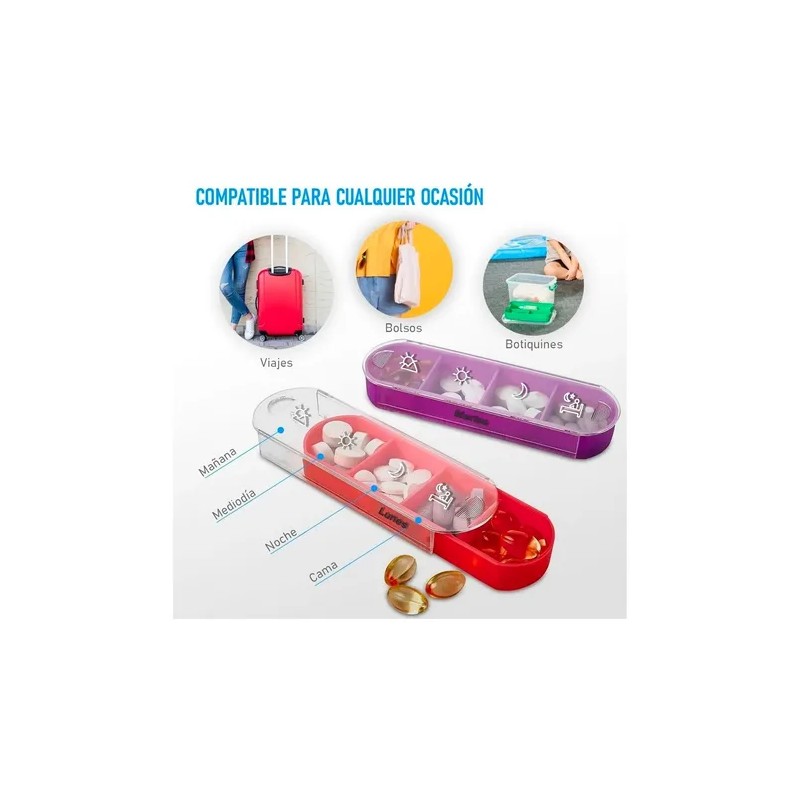 Con 4 tomas diarias (mañana, tarde, noche y adicional), podrás distribuir tus pastillas sin confusiones. ¡Nunca más te saltarás una dosis!