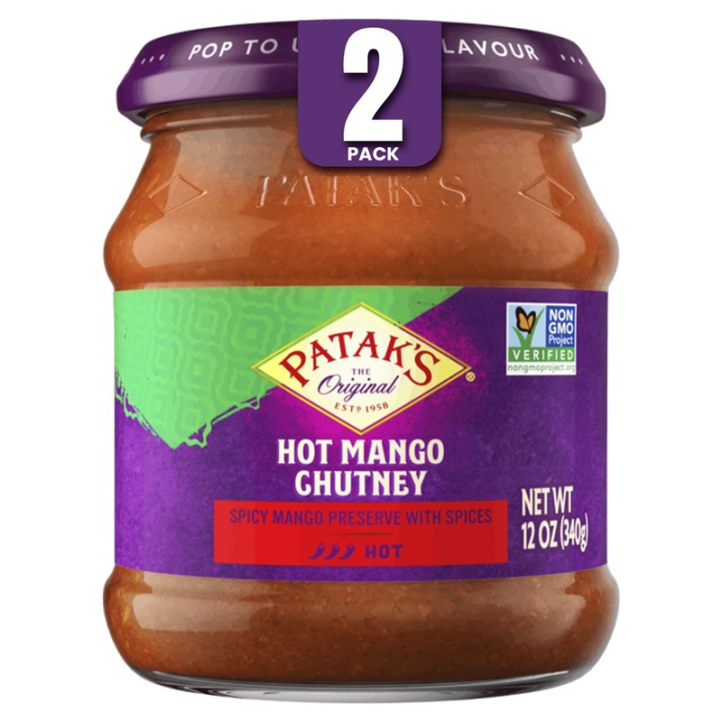 Patak’s Hot Mango Chutney - Sweet & Spicy Mango Chutney with Paprika & Red Chile - Vegan & Gluten-Free - Perfect for Meats, Cheese Platters & Veggie Dips - 12 oz (Pack of 2)