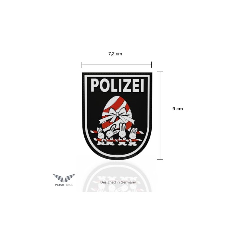 - Police patch Easter: high-quality 3D rubber patch with Velcro of the police. Special Edition Easter. Dimensions: 7.2 cm x 9.0 cm.