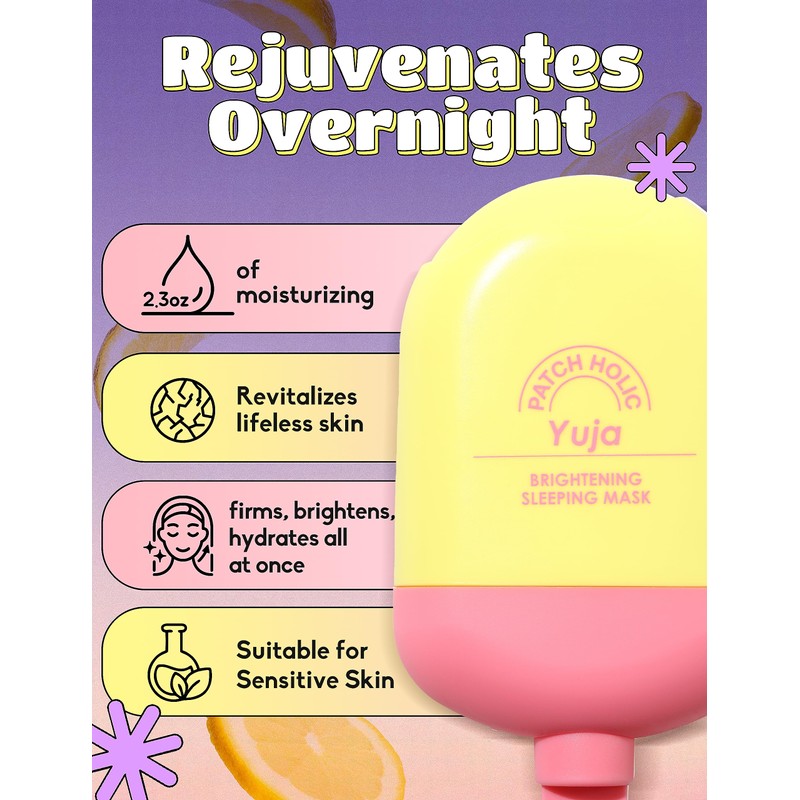 PATCH HOLIC Yuja Brightening Sleeping Mask Vitamin C Face Mask Skincare Essential | Brightening Face Masks with Hyaluronic Acid | Wrinkle Reducer & Hydrating Face Masks | Beauty Face Mask 2.36 fl. oz.