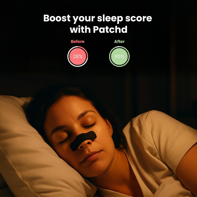 Breathe clearer. Sleep deeper. Patchd nasal strips are non-invasive, drug-free snoring aids designed to gently open nasal passages for easier breathing and better sleep. Whether you’re struggling with nasal congestion, nighttime snoring, or poor airflow, our flexible nose strips help reduce disruptions and support a more restful night. Crafted from soft, skin-safe materials with strong but gentle adhesion, these breathable nose tapes comfortably adhere to your nose without causing irritation. Hypoallergenic and latex-free, they’re suitable for sensitive skin and easy to apply and remove with no sticky residue. Perfect for men and women, side sleepers, and anyone seeking natural snore relief, Patchd nose tape helps reduce dry mouth and improve oxygen intake by supporting proper airflow through the nasal passages. Ideal for home or travel, each pack includes 30 clear strips for consistent nightly use. Whether you need snoring aids for men, snoring strips for women, or simply a better night's rest, Patchd nasal strips are your trusted sleep companion. Note: This product is not a medical device and is not intended to diagnose, treat, cure, or prevent any condition. Consult a medical professional before use if you have concerns about your breathing or sleep health.