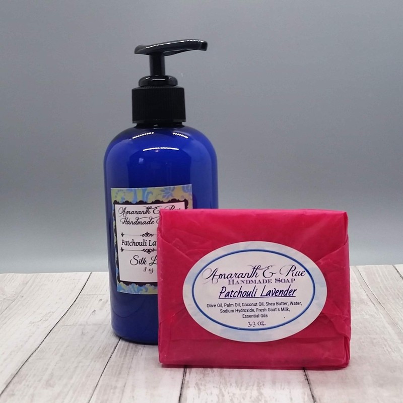 Patchouli Lavender Soap and Silk Lotion Set | Amaranth & Rue