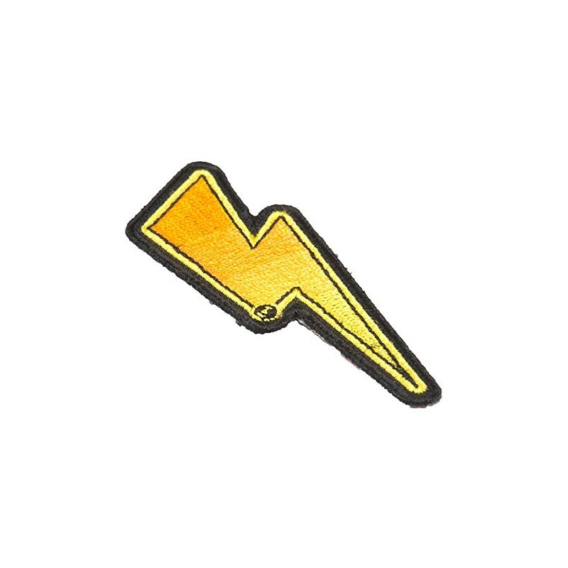 - This golden lightning bolt patch measures 1.25" W x 3" H (3.2cm x 7.6cm)