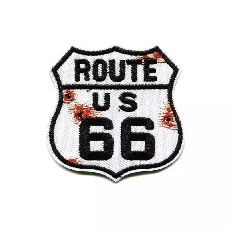 Patchwork Paradise Apocalyptic Shot Up Route US 66 Highway Sign Embroidered Iron On Patch Applique