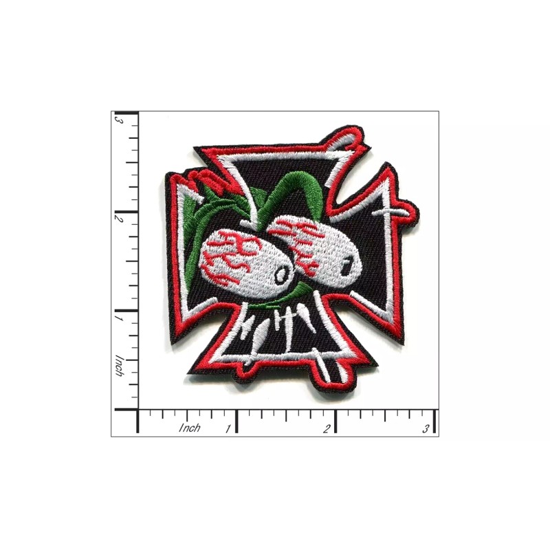 Patchwork Paradise Eyeball Cross Embroidered Iron-On Patch – Gothic Horror Design for Jackets, Bags