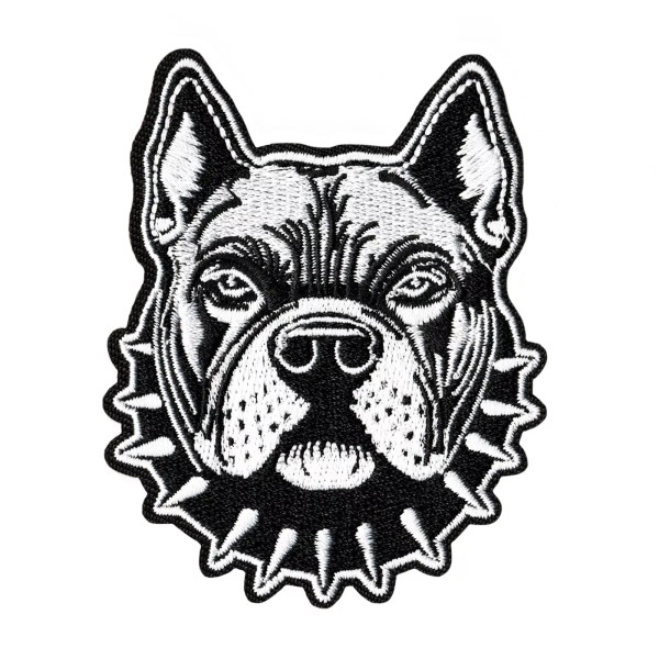 Patchwork Paradise Pit Bull Head Spiked Collar Embroidered Iron On Patch Exclusive Design