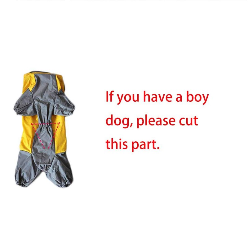 - Features: Waterproof fabric, fine stitching. The elastic belt on the belly makes the raincoat more suitable for the dog. sticker closure type. If you have a boy dog, please cut the piece at the specified position on the belly.