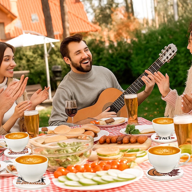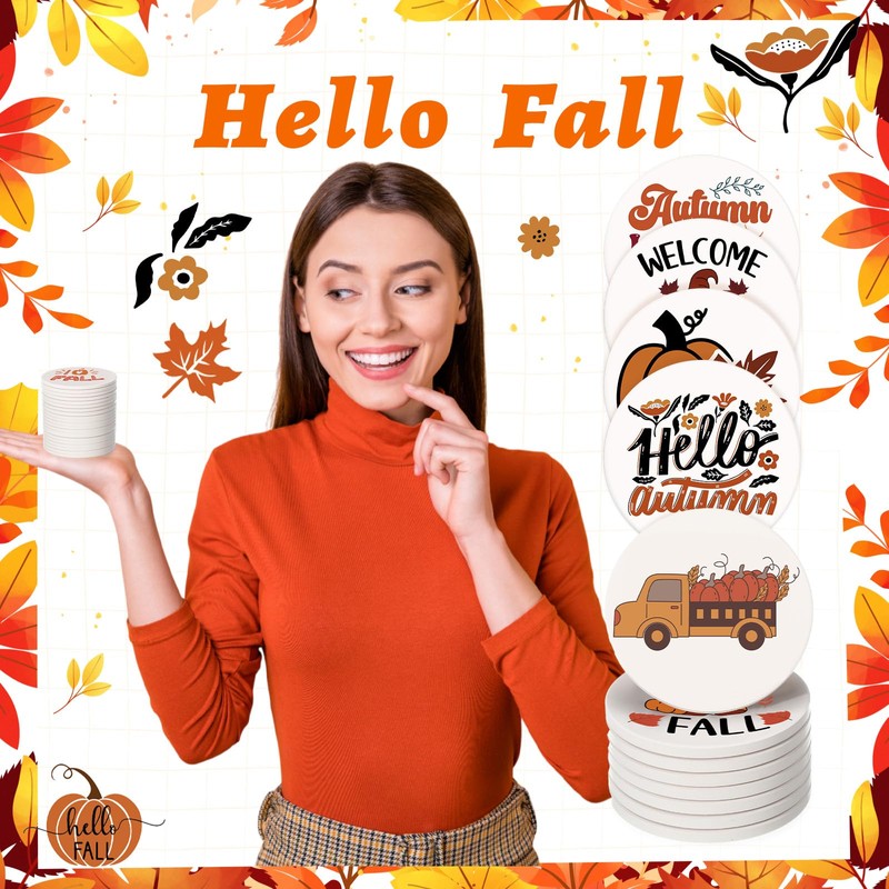 - Autumn Theme Design: our autumn coasters for drinks feature popular holiday elements, such as patterns of pumpkins, maple leaves, sunflowers, trucks, etc. It will perfectly complement your daily and party table decorations; The bright colors and exquisite pattern design can add a festive atmosphere to your autumn-themed party