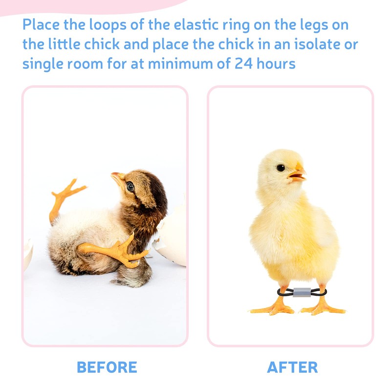 - Easy to use: slide the elastic rings into the rubber tub, and then very carefully and gently place the loops of the elastic ring on the legs on the little chick and place the chick in an isolate or single room for at minimum of 24 hours