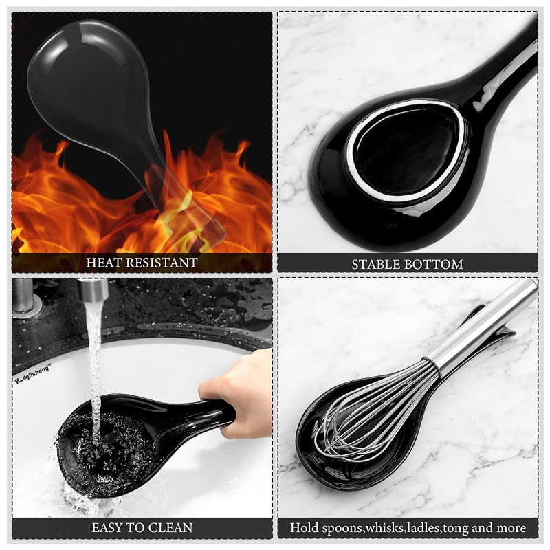 - Package Includes: the package comes with 1 piece ceramic spoon rest which is nice for resting large and small spoons, teaspoon, silverware, soup ladles, spatulas, and other kitchen cooking utensils to keep your counters clean