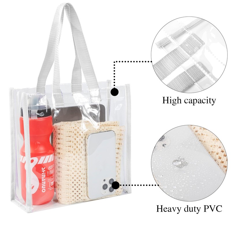 • Sturdy and Thick: the clear tote bag stadium approved is mainly made of quality PVC with webbing material, lightweight and smooth, not easy to deform, fade or break, and the handles are reinforced and easy to carry