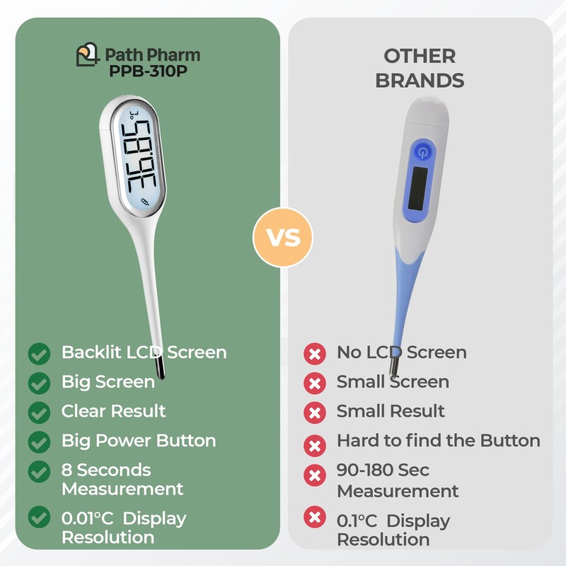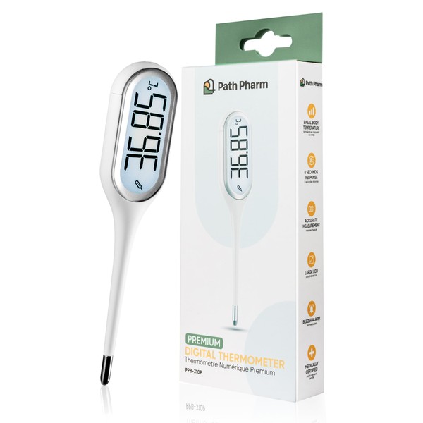 Path Pharm Path Pharm Premium Digital Thermometer for Adults and Kids - Basal Body Thermometer with 8s Reading - 0.05° C Accuracy Medical Oral Thermometer with Backlit Display - Fever Temperature Thermometer