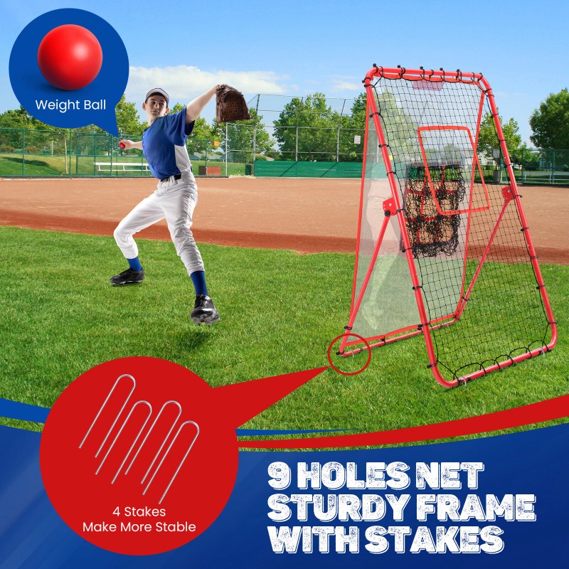 Durable and Reliable Build: Built to withstand intense practice sessions, the sturdy frame with 4 stakes and 1.25-inch coated steel poles ensures stability and longevity. The high-quality Nylon net can handle powerful throws, making it perfect for both baseball and softball players.
