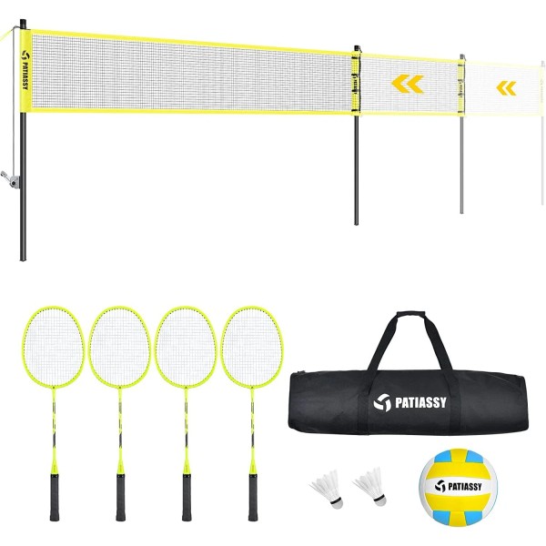 Patiassy's 2-in-1 volleyball and badminton combo set is easy to set up and perfect for you to play with family and friends in your backyard, park, or on the beach.